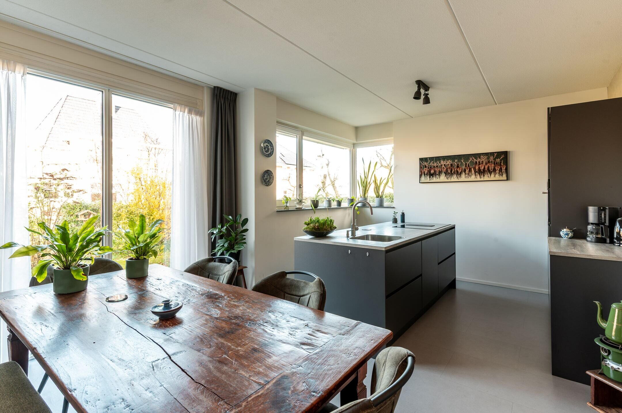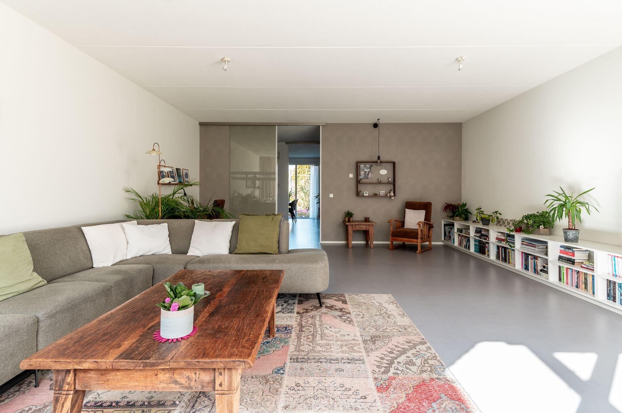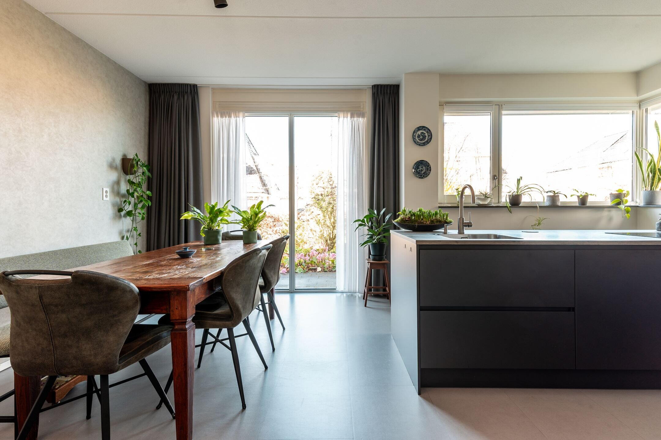 Begane grond: Entree; ruime hal met meterkast en toilet; glazen schuifdeur naar de tuingerichte en vanuit de bouw met 3 meter uitgebouwde woonkamer van ruim 40m² met openslaande deuren naar de achtertuin; moderne woonkeuken uit 2020 van 21m² welke is uitgevoerd met een kookeiland voorzien van een inductiekookplaat met interne afzuiging, koelkast, ladenvriezer, oven en een vaatwasser. Via de achterzijde bereikt u de heerlijke, op het zuiden gelegen achtertuin met toegang tot de garage.