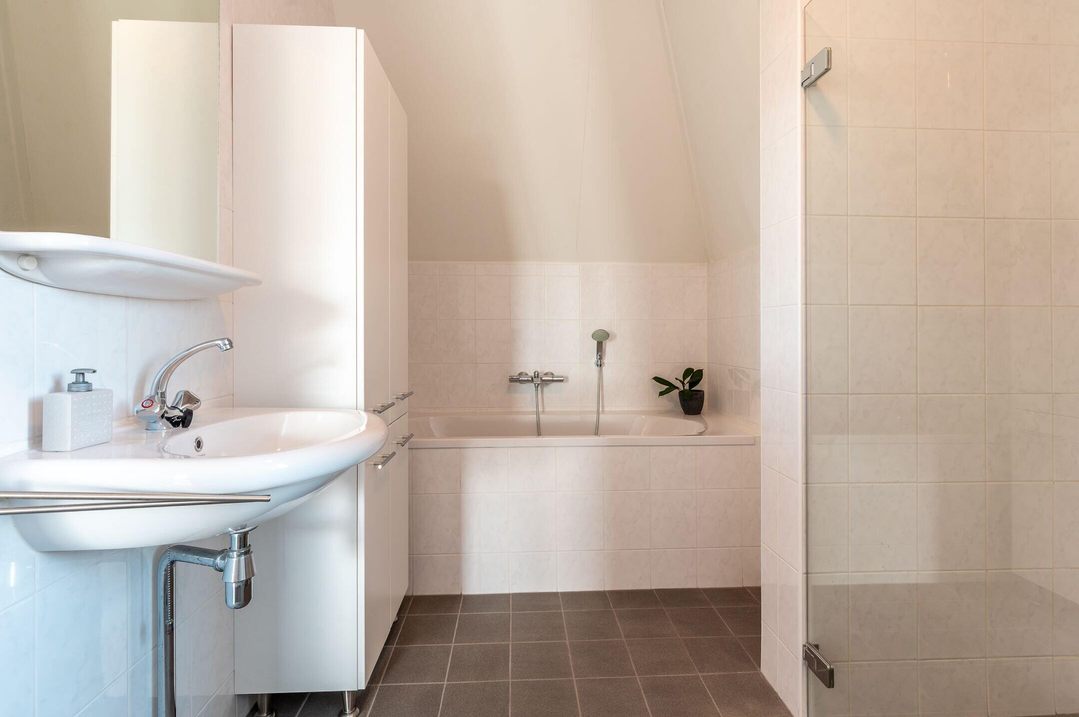 Eerste verdieping: Overloop; drie ruime slaapkamers van respectievelijk 9-, 11,6- en 11,9m²; volledig betegelde badkamer voorzien van een ligbad, inloopdouche, wastafelmeubel en toilet.