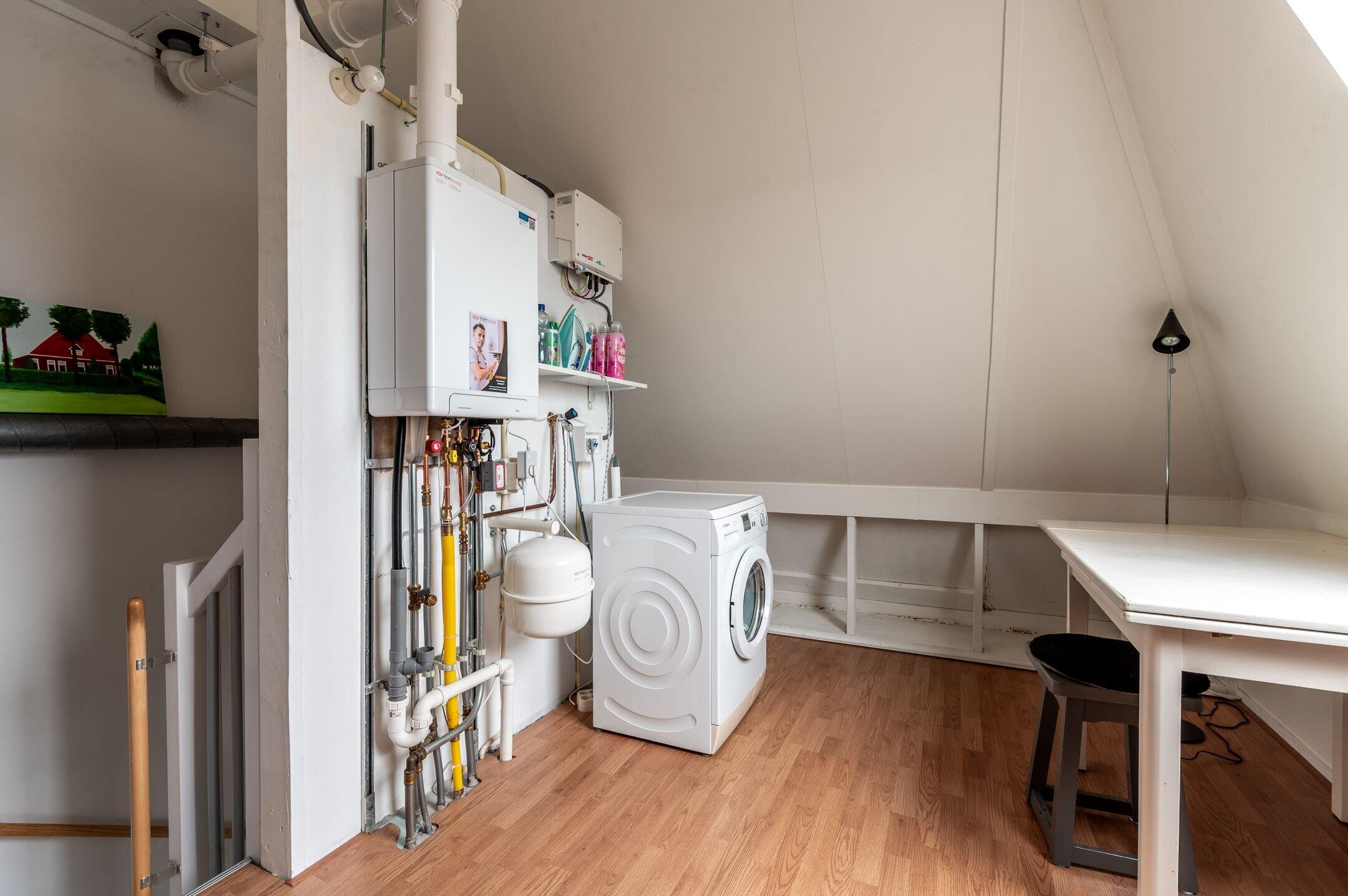 Tweede verdieping: Via een vaste trap bereikt u de ruime zolder van bijna 19m² met een vrije hoogte van bijna 4 meter en de CV-opstelling (Intergas, 2025), witgoedaansluitingen en een dakraam voor prettige lichtinval. De zolder biedt volop mogelijkheden als extra slaapkamer, speelkamer of hobbyruimte.